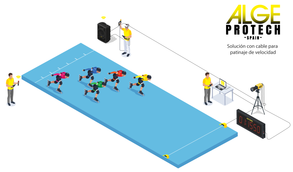El patinaje es una disciplina deportiva que combina velocidad, técnica y precisión en el control del tiempo. Modalidades como el patinaje de velocidad, el alpino en línea y el speed slalom requieren sistemas de cronometraje fiables para garantizar resultados exactos en cada manga o recorrido. Alge Protech Spain ofrece soluciones de Alge-Timing adaptadas a competiciones de patinaje: cronometraje preciso, dispositivos de impulsos, fotocélulas, pantallas y photo finish para gestionar tiempos y clasificaciones en todo tipo de eventos.